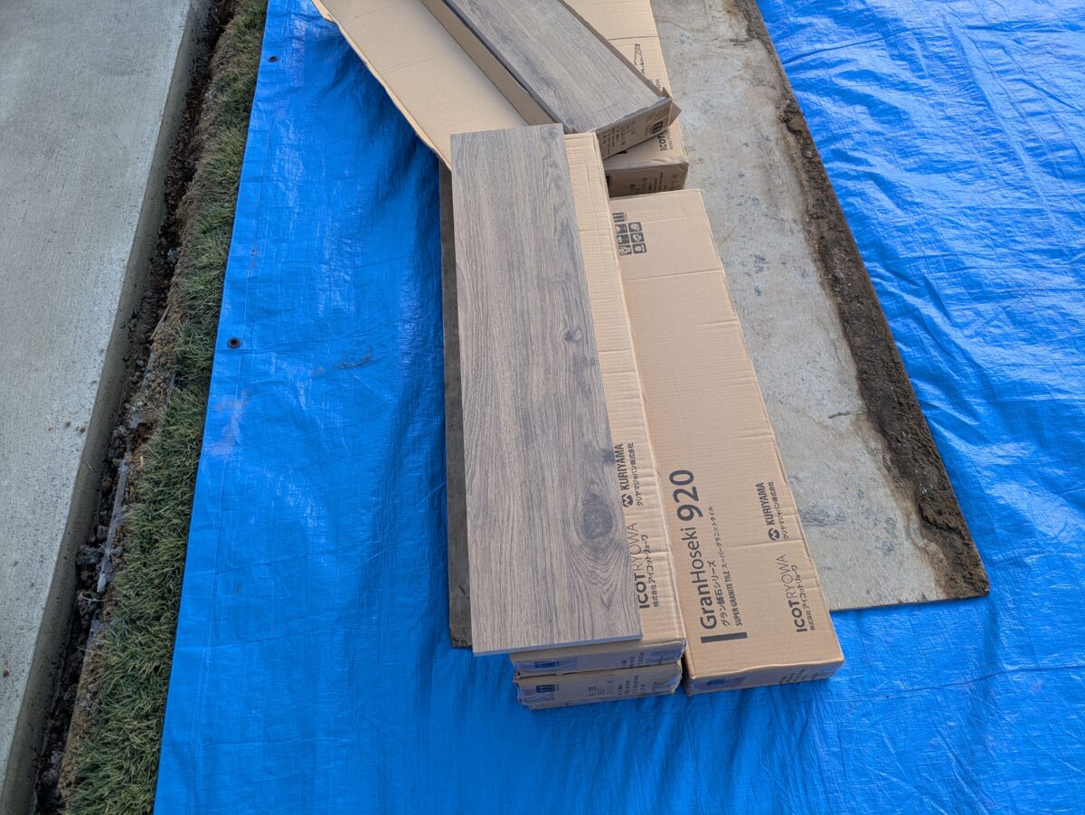 張るタイルは、アイコットリョーワの900×200の木目調の大判タイル、ベルダ(D163)。