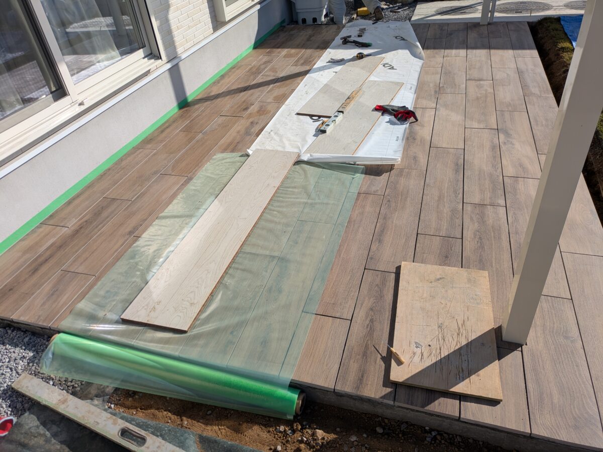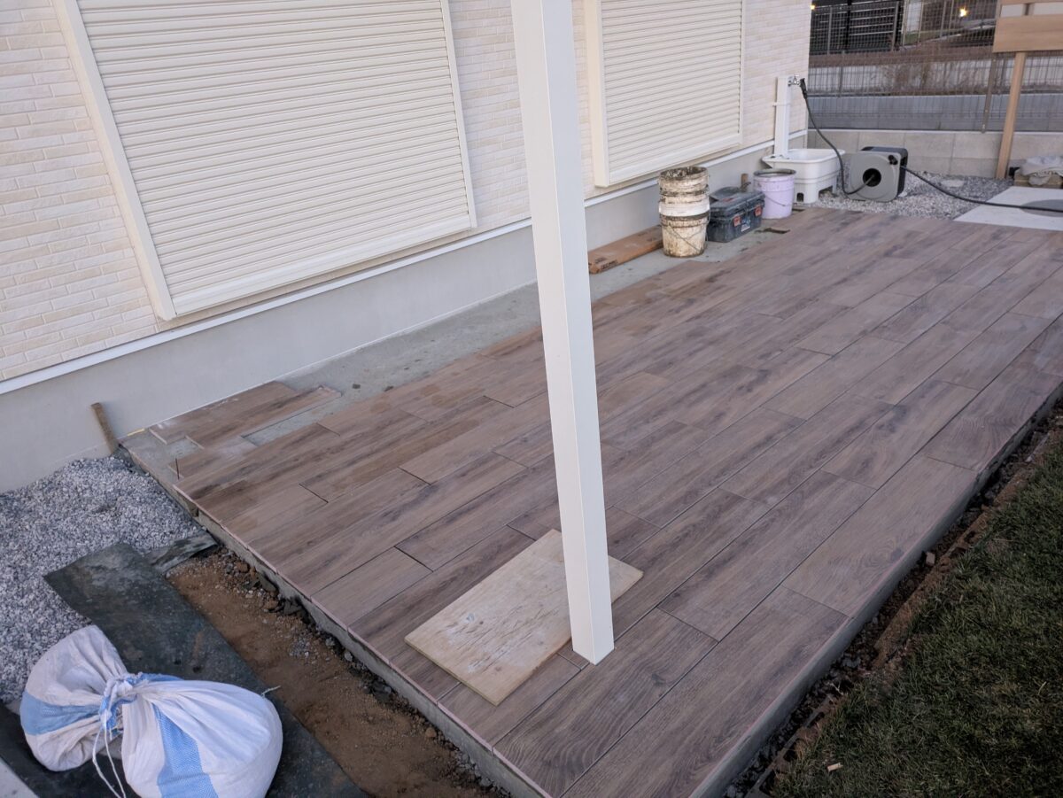 タイルデッキ工事を施工中の加須市内S様宅。