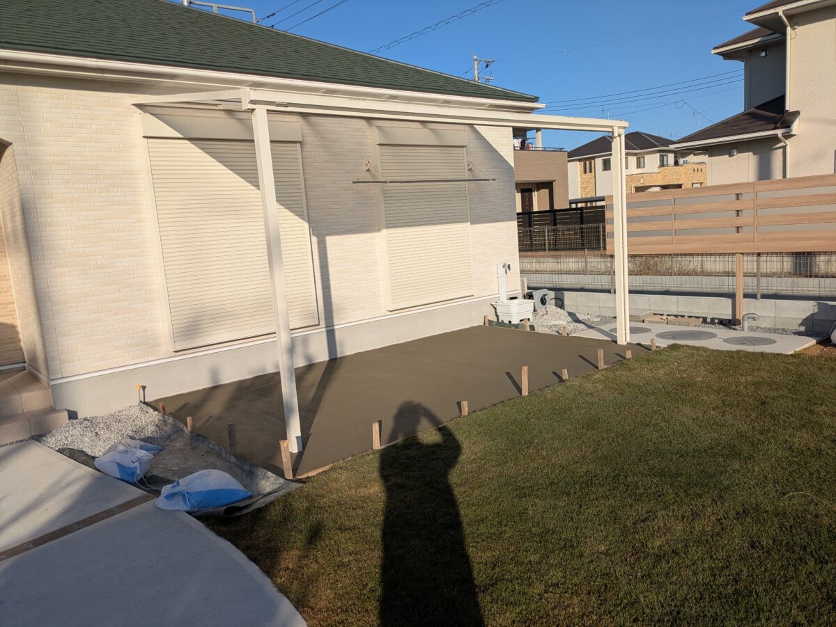 羽生市内K様宅新築エクステリア工事 駐車場・駐輪場土間工事